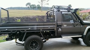 The headboard with 63mm o tubing full safety mesh and load stoppers provide strength and safety. Under floor supports for tool boxes at rear if you require tray can be lifted up or down to suit required height removeable rear carry rack flatbed floor removable formply flooring makes it easy to fit under floor tanks or batteries also for fitting to vehicle support rails.